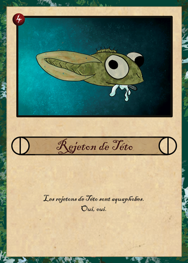 Our idea was a card game, based on the principle of creature capture, called Offspring. We understood from the theme that the game should have a decadent mechanic as the game progresses. Players should have a constraint punishing them if they capture too much offspring.